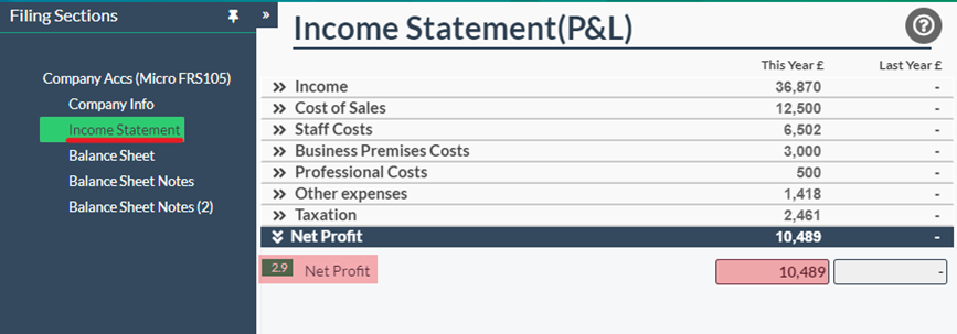 For this example, we will just assume that the previous micro entity is choosing to file as a small entity instead, so will use the same figures for completing the small accounts.